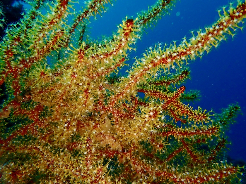 大小幾つもの穴が互いに絡み合って、海底迷宮を形作っています。