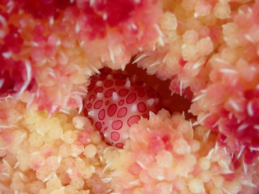 大小幾つもの穴が互いに絡み合って、海底迷宮を形作っています。