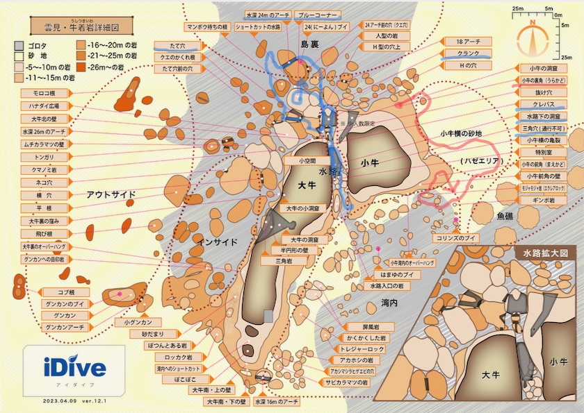 3ダイブ目:牛着岩(うしつきいわ)小牛の裏角 → 小牛の前角