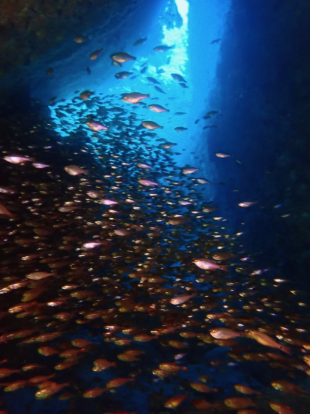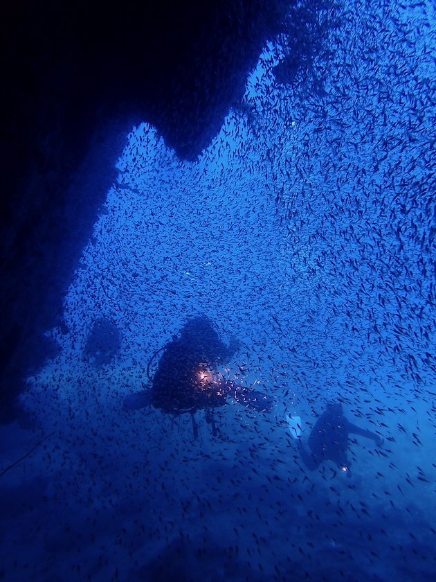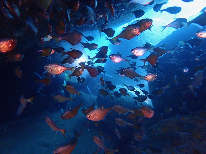 先端の洞窟には、キンメモドキの幼魚がいっぱい!