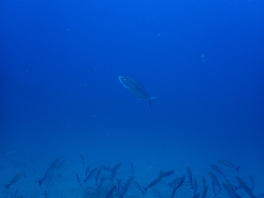 小さめのカンパチが群れでびゅんと通り過ぎた後に。