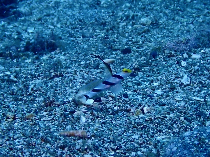 先日のうねりで、若干ハゼの巣穴が移動してしまったようです。