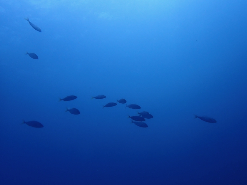 小さいカンパチの群れ、一瞬で通り過ぎて行きました!
