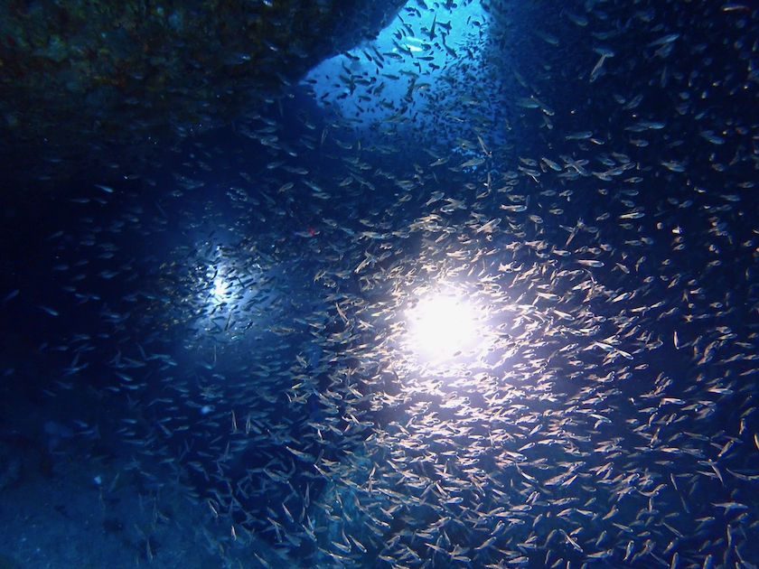 どうやらカンパチの群れはこの小魚の群れを狙っていたようです。
