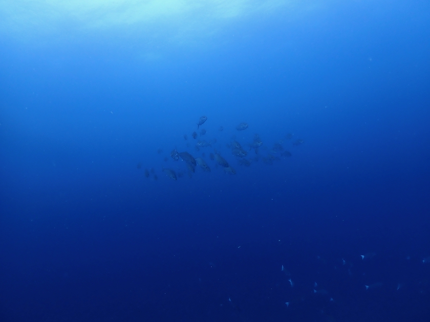 トビエイやアオウミガメに遭遇し、向こうが見えなくなるほどの群れも見て、1本目でお腹いっぱい!と言っておりました。😅