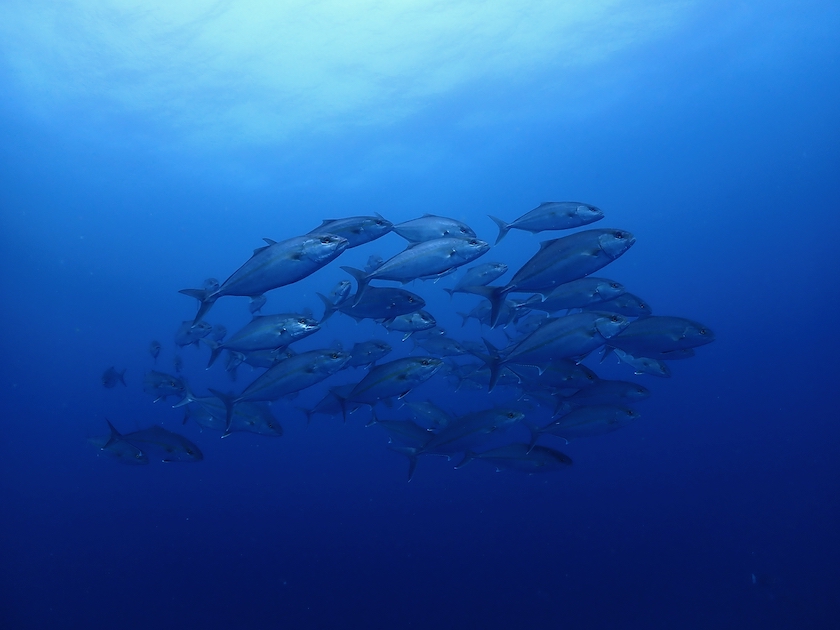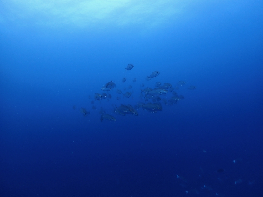 遠くにいたカンパチの群れが、どんどんこっちに近づいてきました!😳