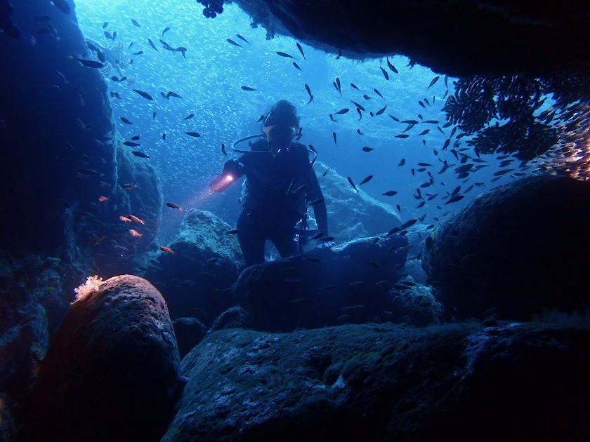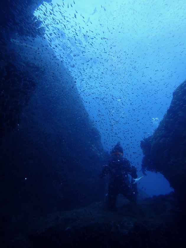 一緒に潜ったベテランダイバーのライトがいいアクセントに!