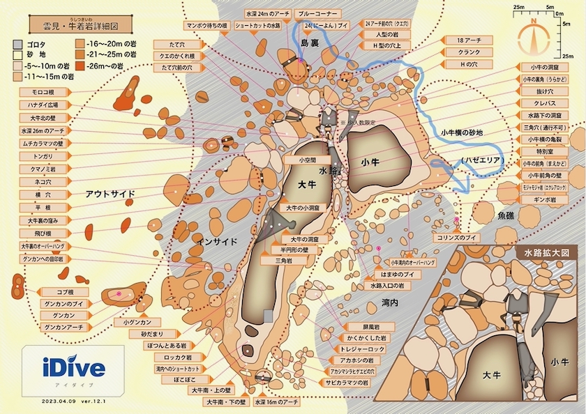 1ダイブ目:牛着岩(うしつきいわ)24ブイ → 小牛の前角
