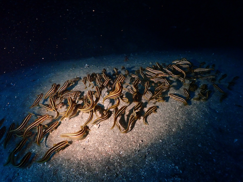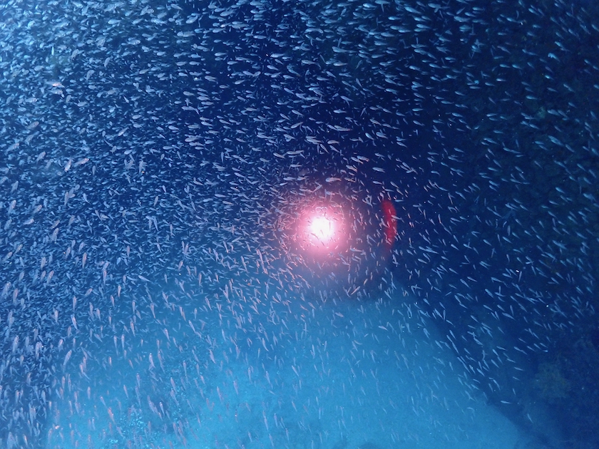 上2枚の写真は雲見の不文律を発動させて、群れを挟んで互いにライトで照らしながら撮りました!😄