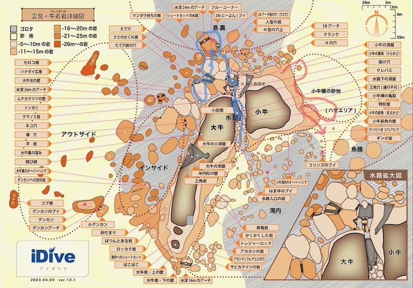 2ダイブ目:牛着岩(うしつきいわ)小牛の裏角 → 小牛の前角