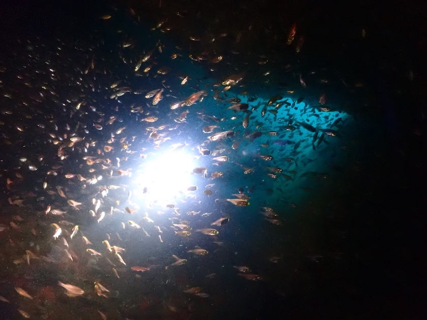 水路下の洞窟は、群れ群れ。