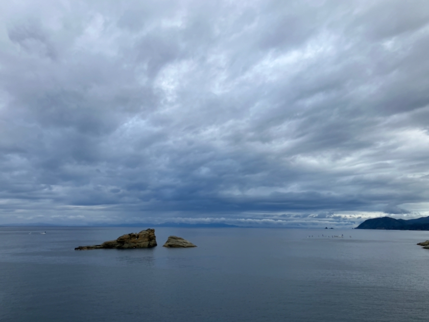 今日も曇り空だけど、べた凪の雲見です。