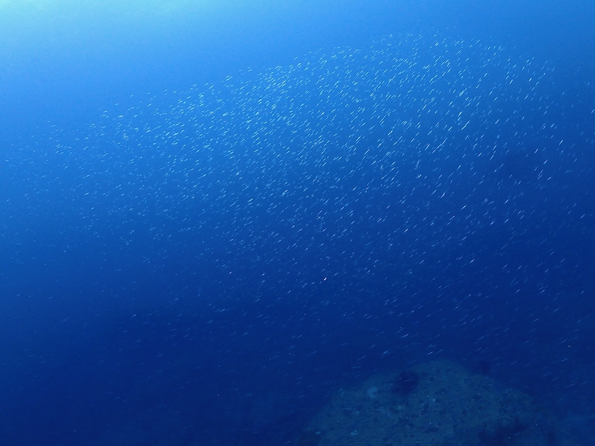 1本目はいわゆる牛着岩の「アウトサイド」と呼ばれるエリアの中層を、ふわふわ〜っと泳いできました。