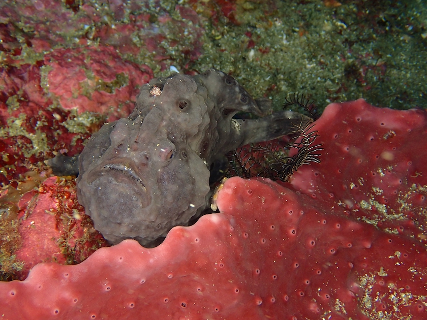 大牛の洞窟の入り口にある三角岩の上のイロカエルアンコウ。