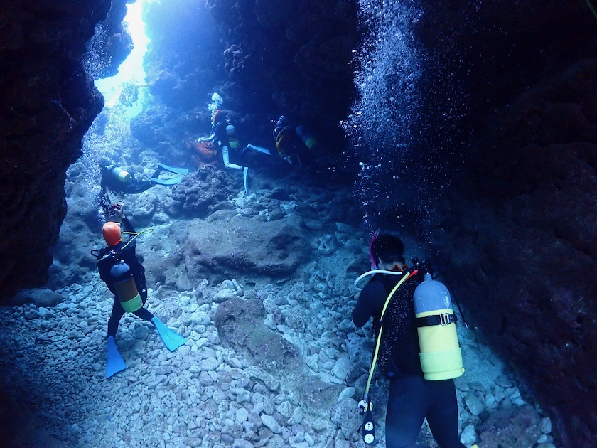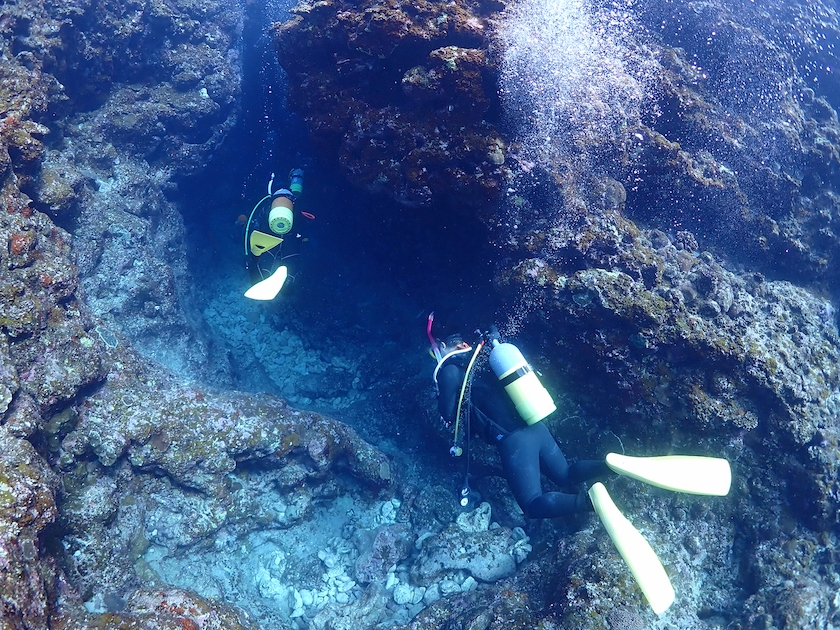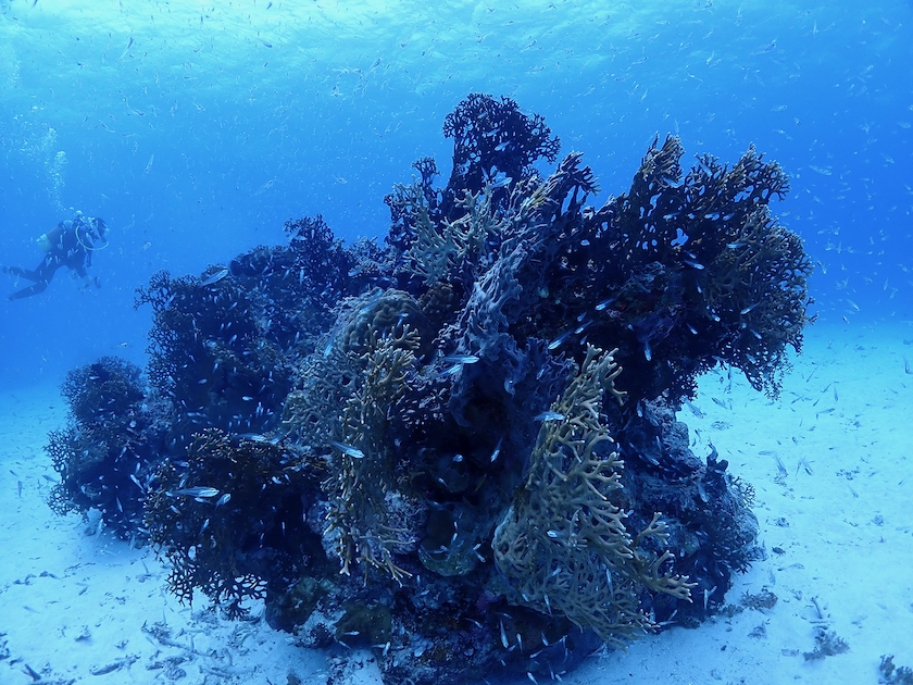 1本目は真っ白な砂地が印象的でしたが、2本目はサンゴ礁が長年かけて作り上げた地形が面白い場所でした。
