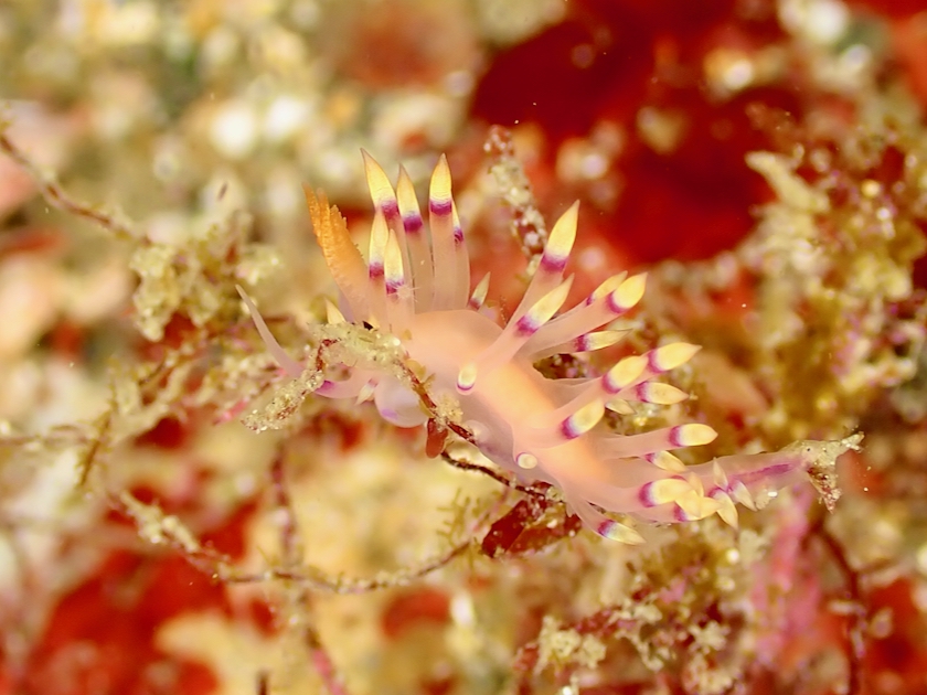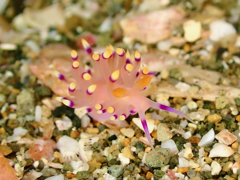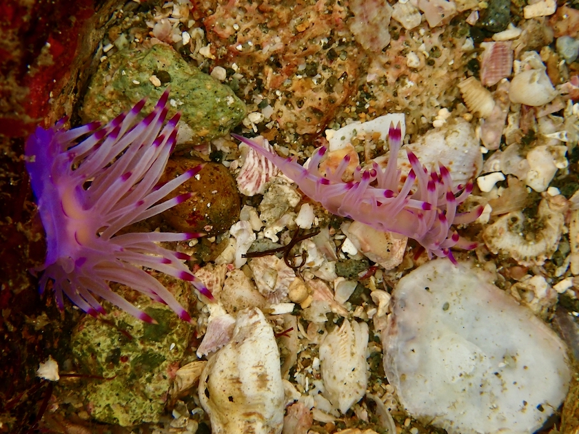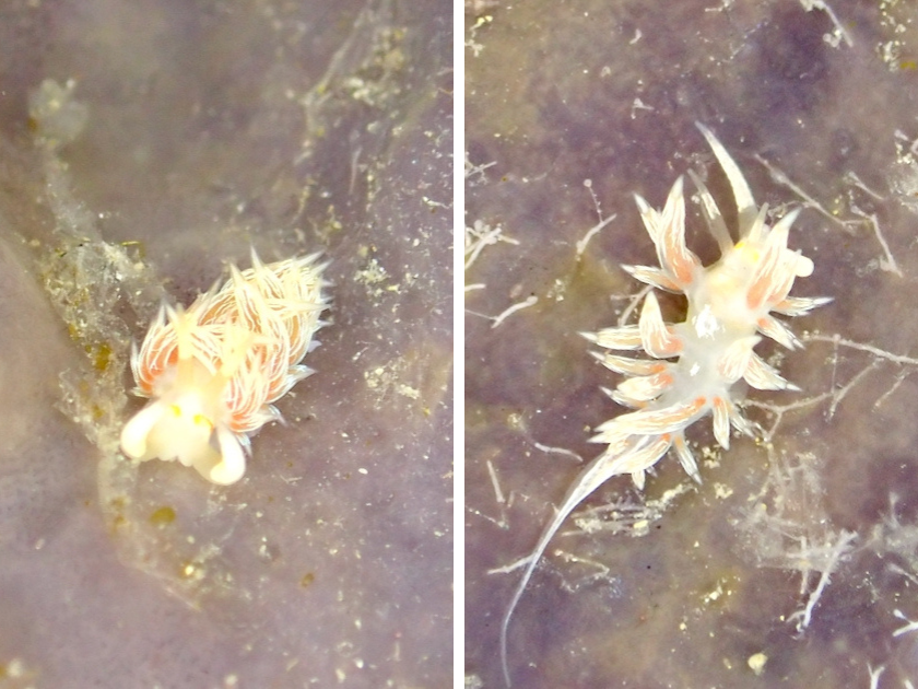 上の写真は、今日たくさん見かけたハクセンミノウミウシの一種ですね。