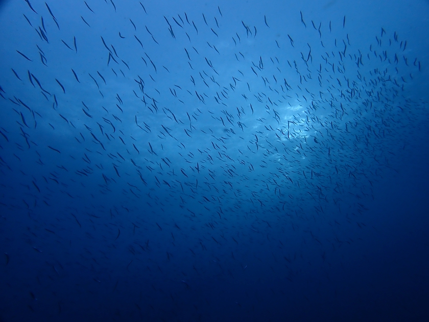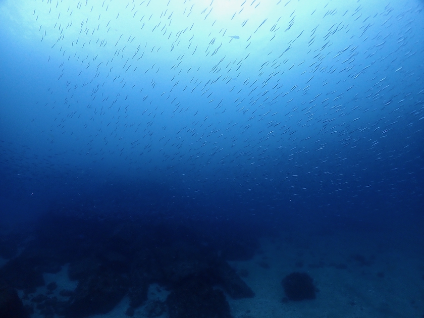 でも、砂地にも中層を見上げるとイワシなどの群れが!