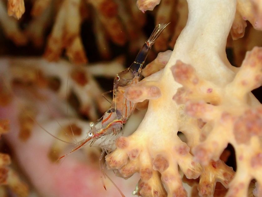 お腹にタマゴを抱えたアカスジカクレエビ。
