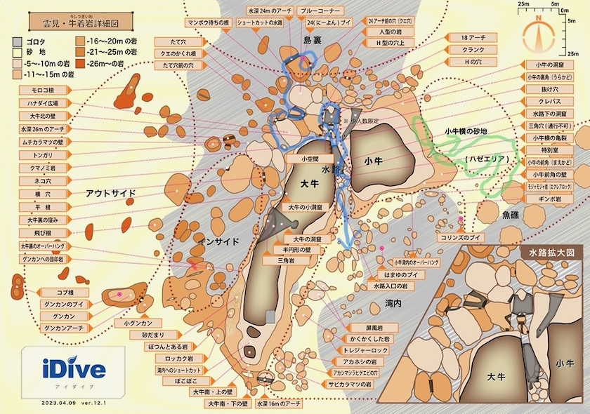 1ダイブ目:牛着岩(うしつきいわ)24ブイ → 水路前