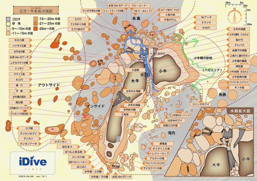 3ダイブ目:牛着岩(うしつきいわ)コリンズのブイ → 小牛の裏角