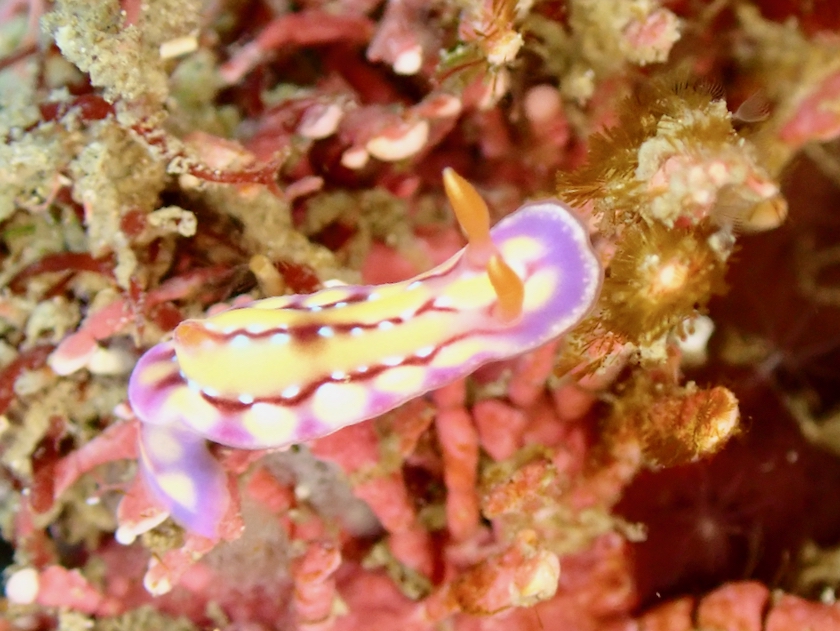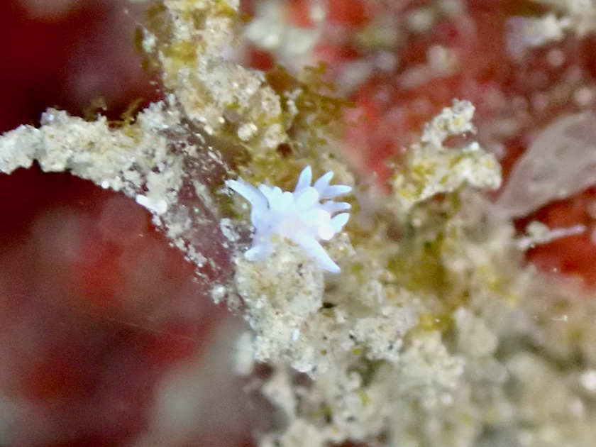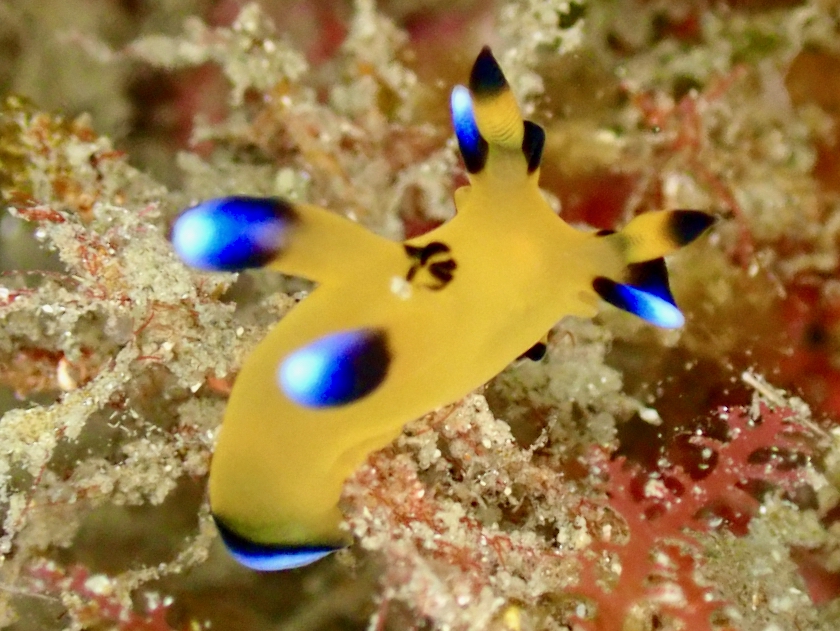 最後になんとか、ピカチュウウミウシの愛称で知られるウデフリツノザヤウミウシを見つける事が出来ました!