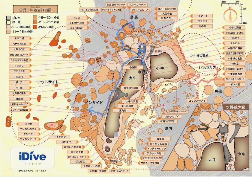 2ダイブ目:牛着岩(うしつきいわ)小牛の裏角 → 小牛の前角