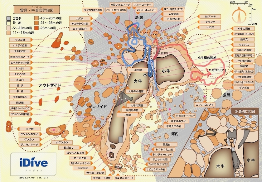 2ダイブ目:牛着岩(うしつきいわ)小牛の洞窟 → 小牛の前角(まえかど)
