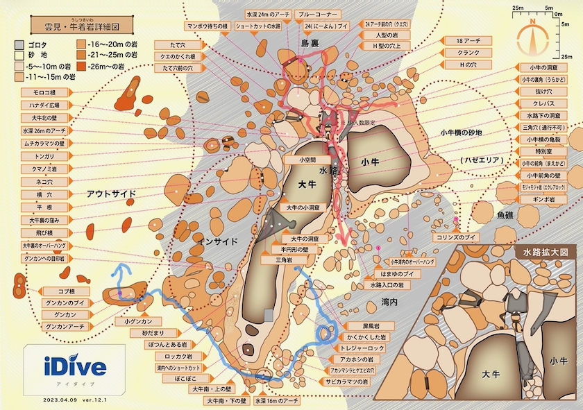 2ダイブ目:牛着岩(うしつきいわ)小牛の裏角 → 水路前