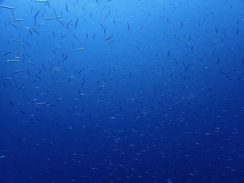 中層にはすごい数のイワシが群れています。