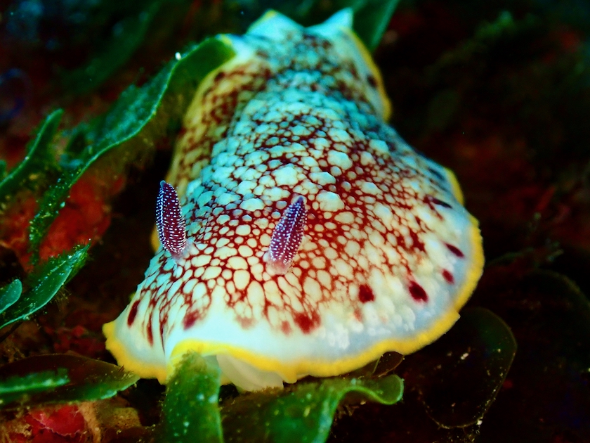 触角と二次鰓が白いバージョンのヤグルマウミウシ。