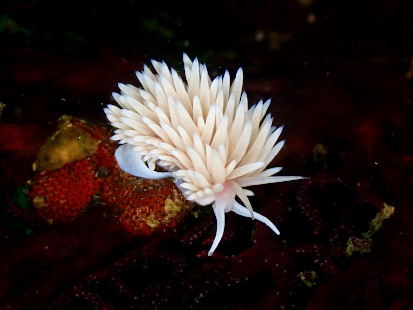 このウミウシは、他のウミウシが産んだタマゴを食べる専門のエッグイーターです。