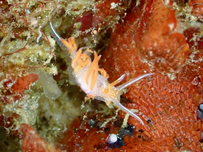 人様が産んだ卵塊を食い散らかしてるツルガチゴミノウミウシ。😓