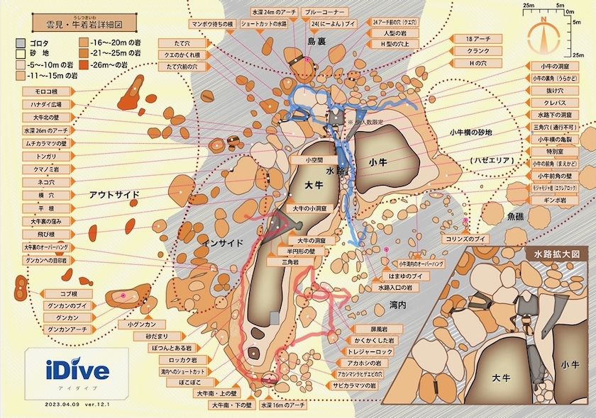 1ダイブ目:牛着岩(うしつきいわ)小牛の裏角 → 水路前