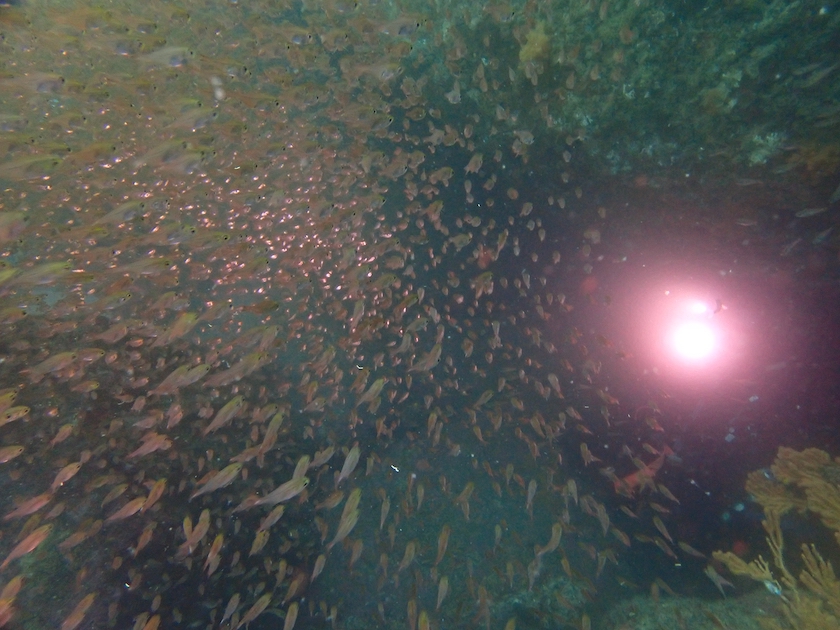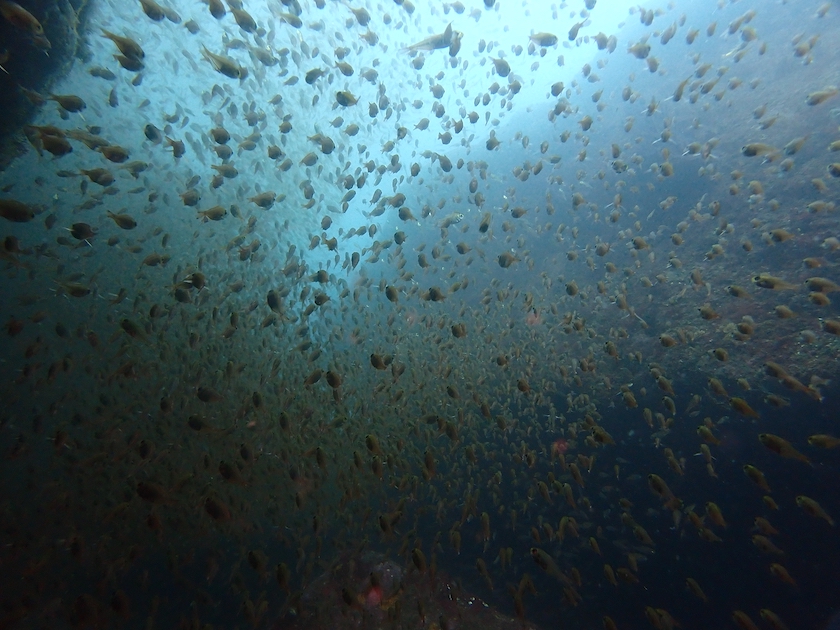 大牛の洞窟の中は、魚で群れむれ〜。
