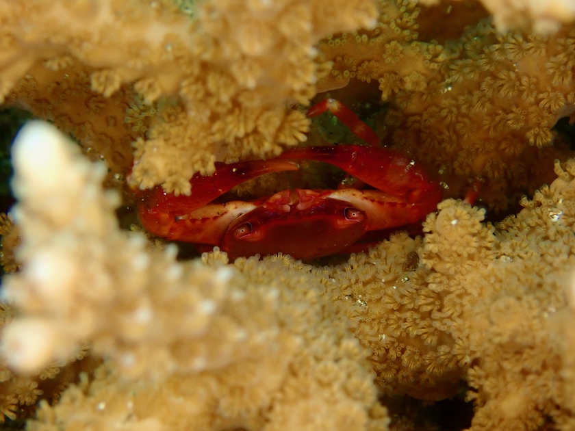 エダサンゴの隙間のベニサンゴガニを眺めたり。